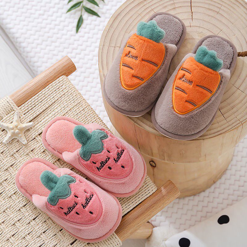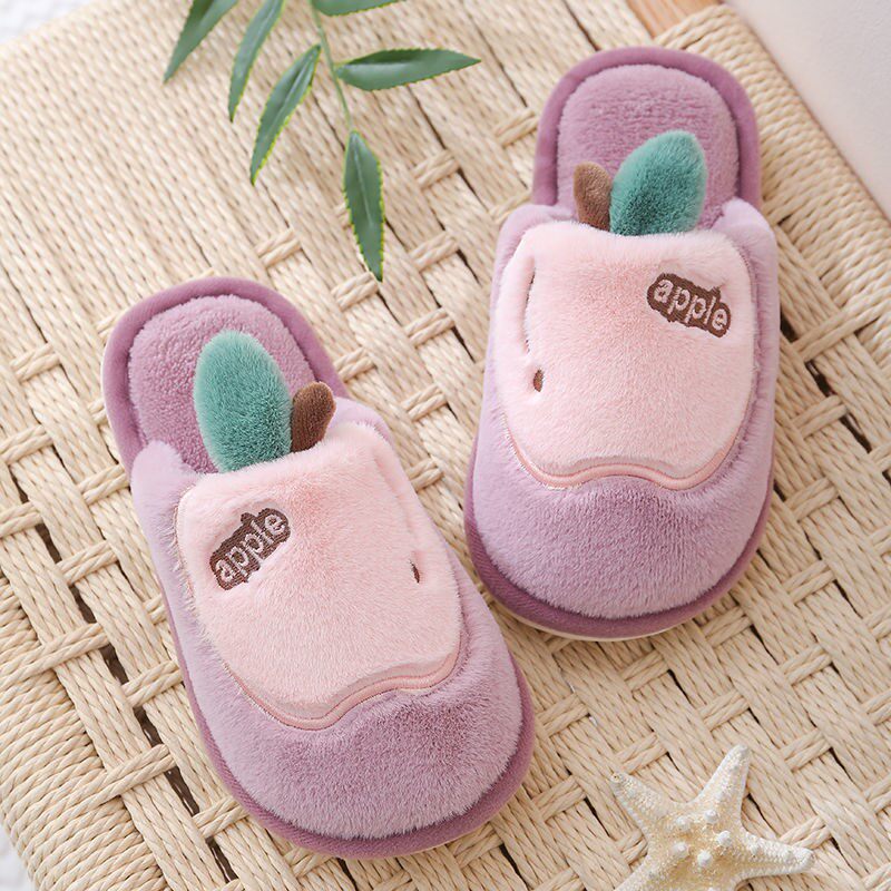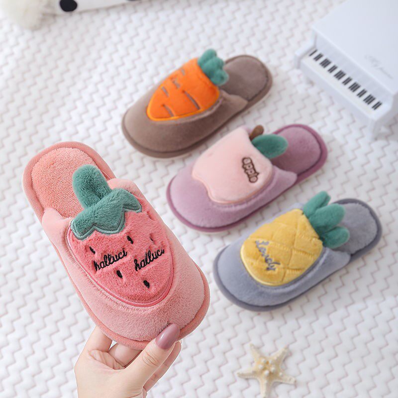 Children's cotton slippers male and female children One family of three children with cute non-slip soft bottom indoor thick bottom floor slippers