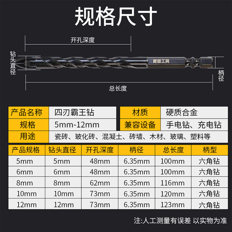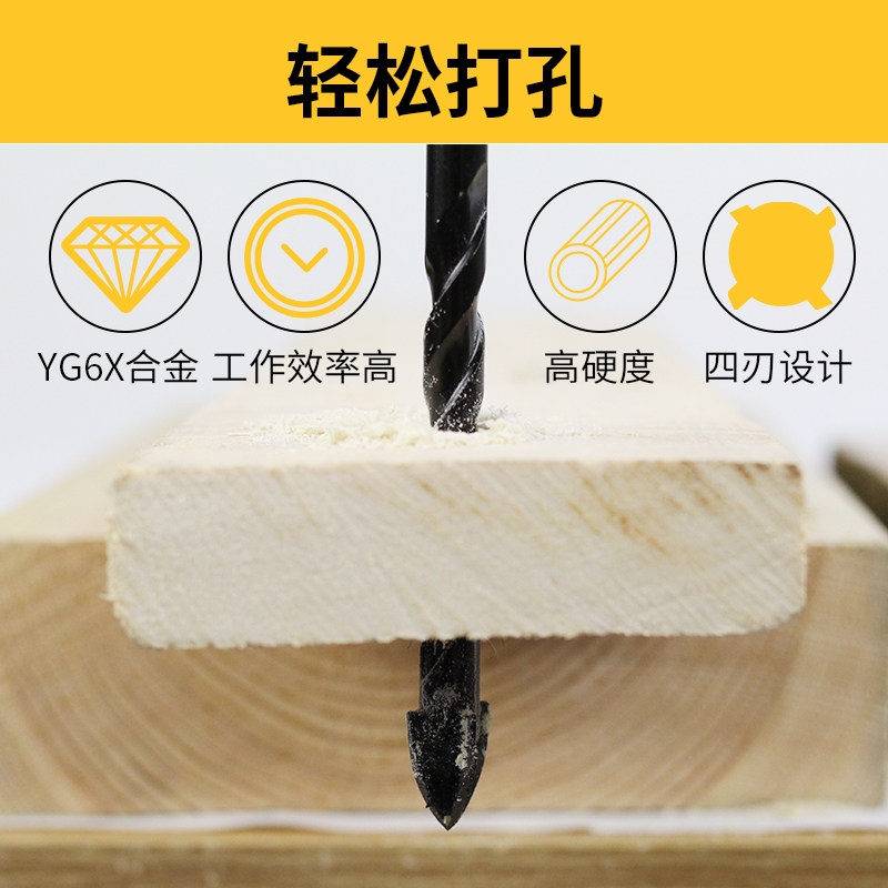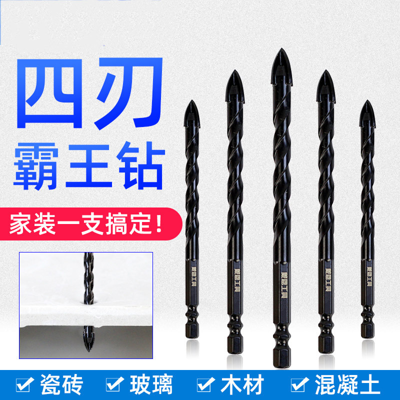 Tile drill bit dry drilling full porcelain glass barking drill with electric drill perforated concrete alloy four-edge swivel head triangular drill