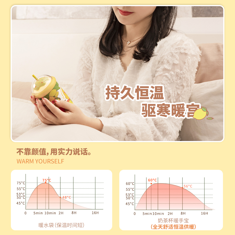 Milk tea cup vitality little yellow sheep-with light-hand warmer charging two-in-one chicken