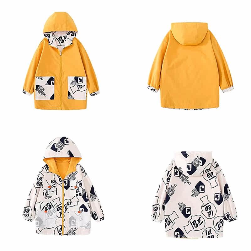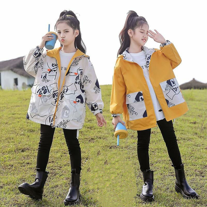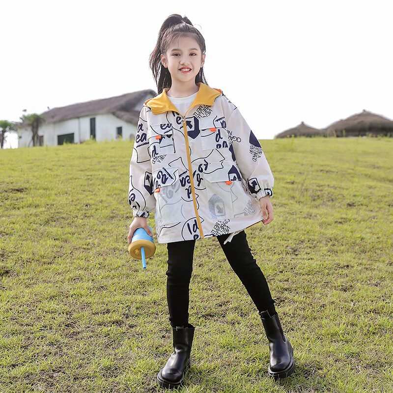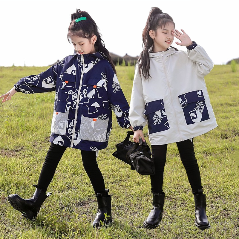Girls' leisure coat loose gas on both sides wearing big children's spring and autumn hoodie cartoon tops for children to wear outside