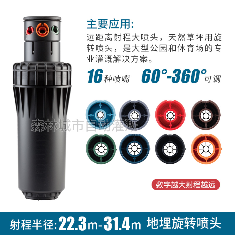 The original Hunter I - 90 buried rotating nozzle gears drive the golf football court lawn