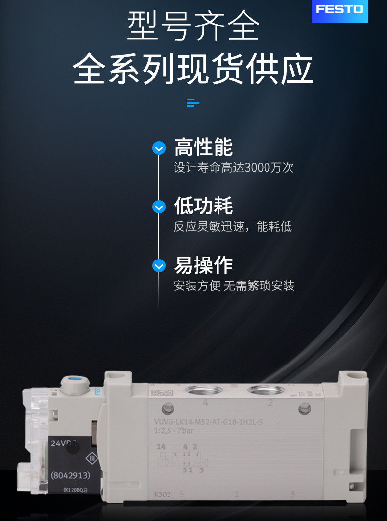 Festo solenoid valve 574231VUVG-L14-P53C-T-G18-1R8L three-position five-way middle seal