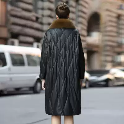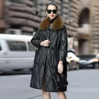 2021 Autumn and Winter Haining Leather Leather Down Jacket Women's Long Edition Loose Fat Large Size Sheepskin Coat