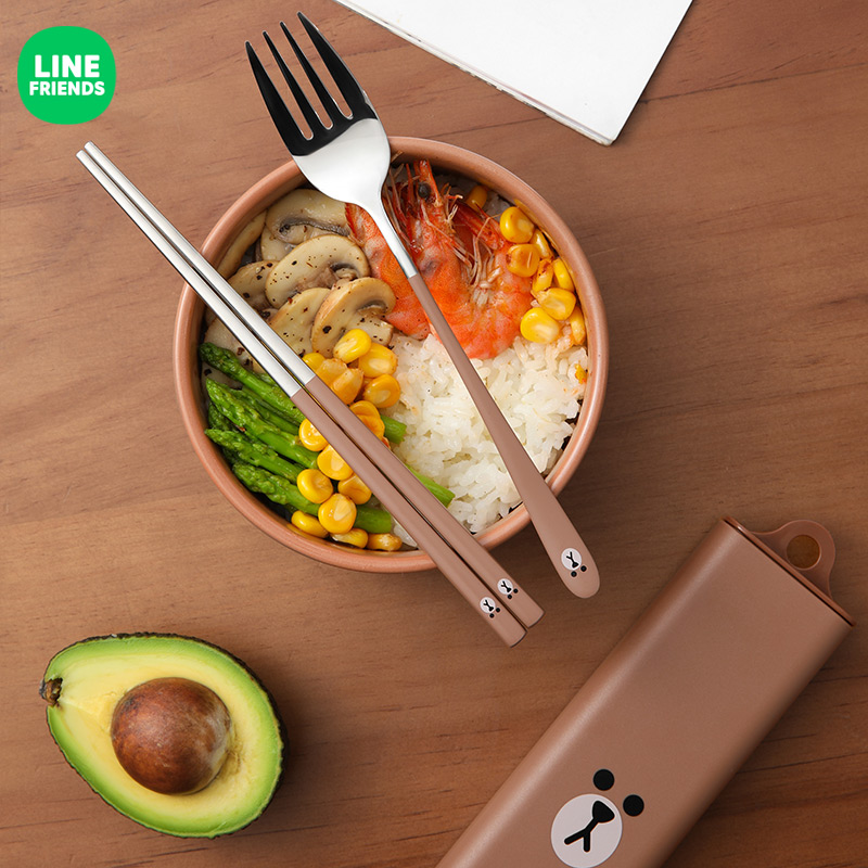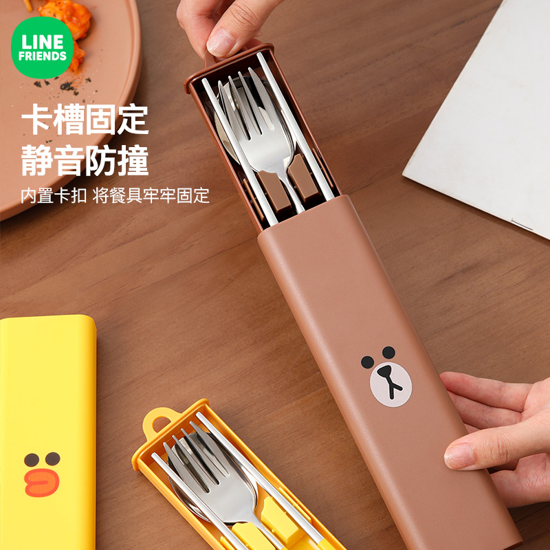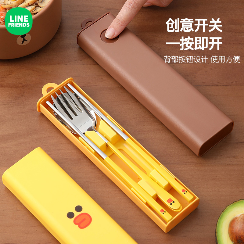 LINE FRIENDS 304 stainless steel chopstick spoon suit single student outside with portable cutlery containing box