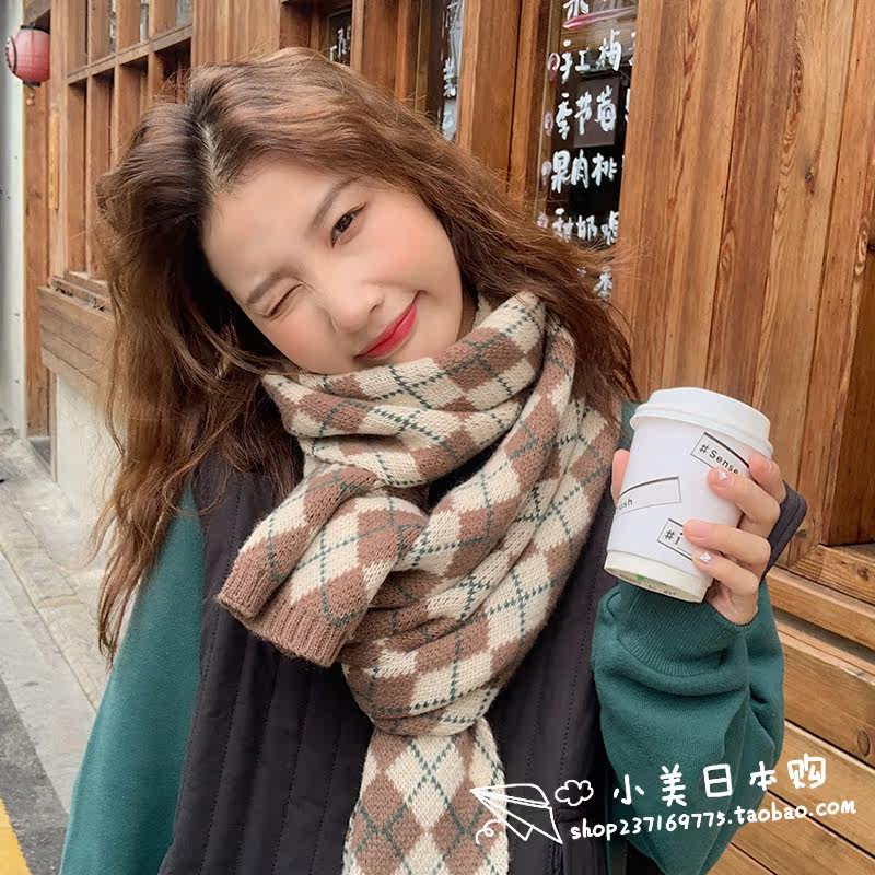 Japan GP official website Japanese diamond plaid scarf women's wool knitting thickened warm scarf general winter