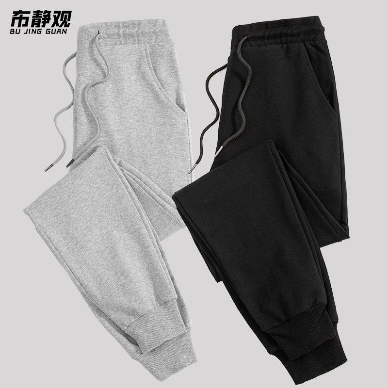 Sports pants men's spring-autumn trousers pants pure cotton-loose straight tube feet plus pure basketball pants