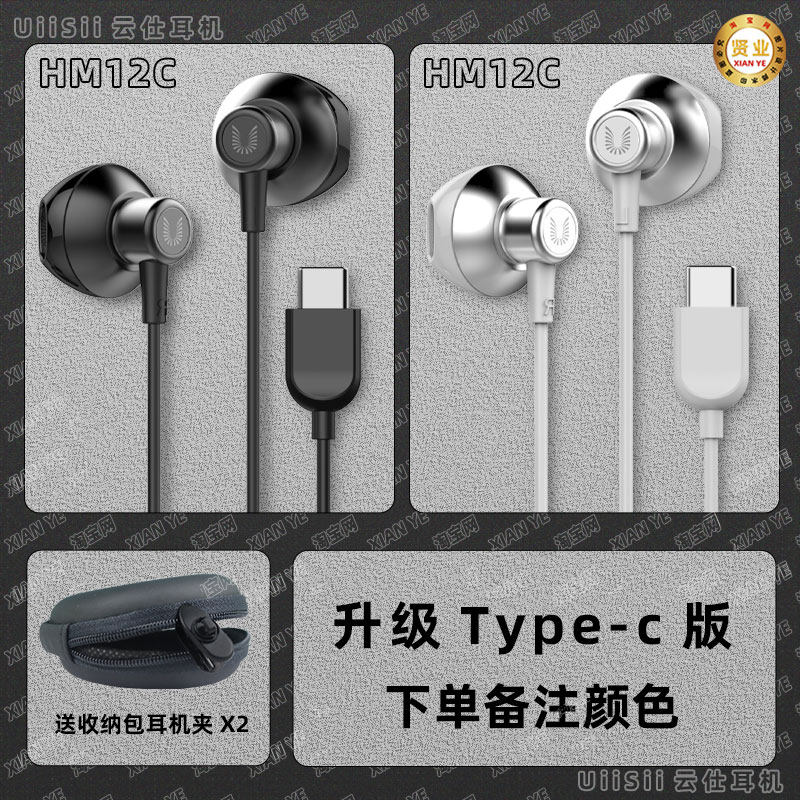 UiiSii Yunshi HM12C heavy bass Type-c flat wire wireline control hifi semi-in-ear metal headphones