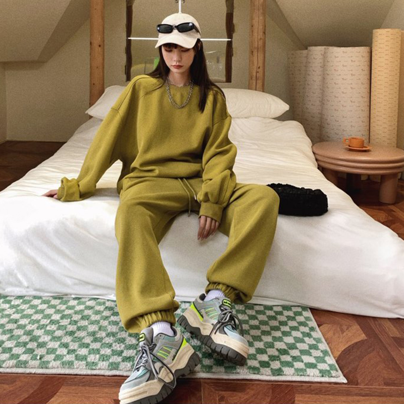 Temperament Retro Port Early Autumn Clothing 2021 New Women's Wind Chic Casual Fashion Thick T-shirt Sport Two Suits of the Ocean Pie