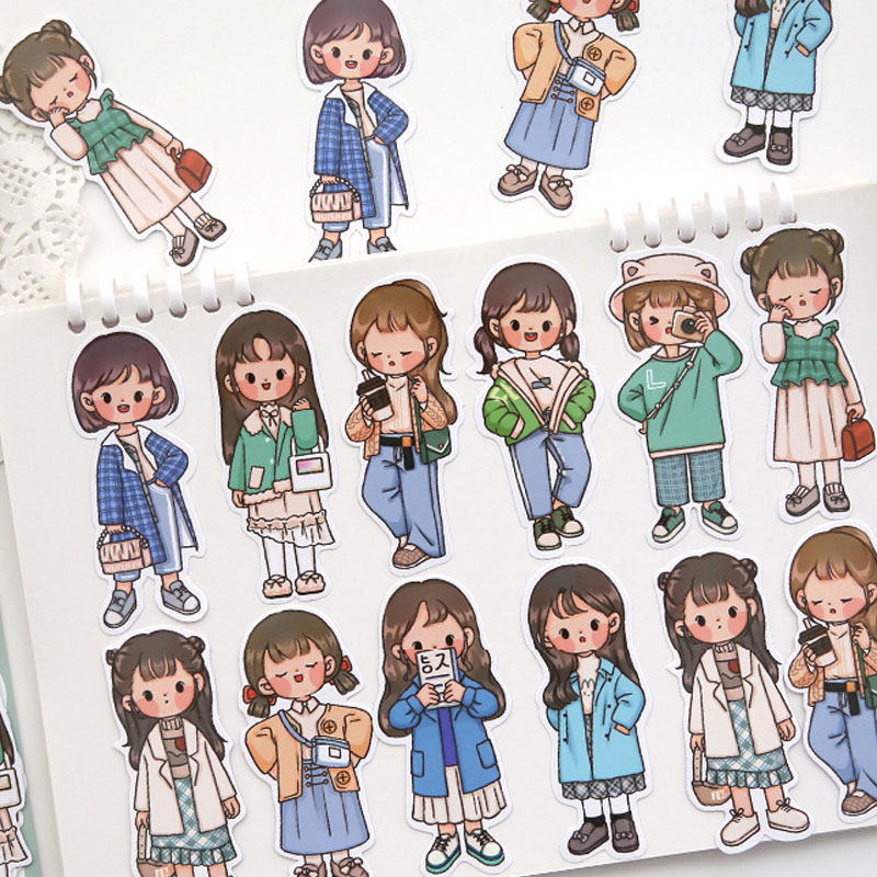 This study 100 sheets of PVC hand account stickers set cute characters waterproof stickers decoration small pattern cartoon girl heart 100 sheets of ins thermos cup mobile phone water cup diy stickers hand account sticker painting