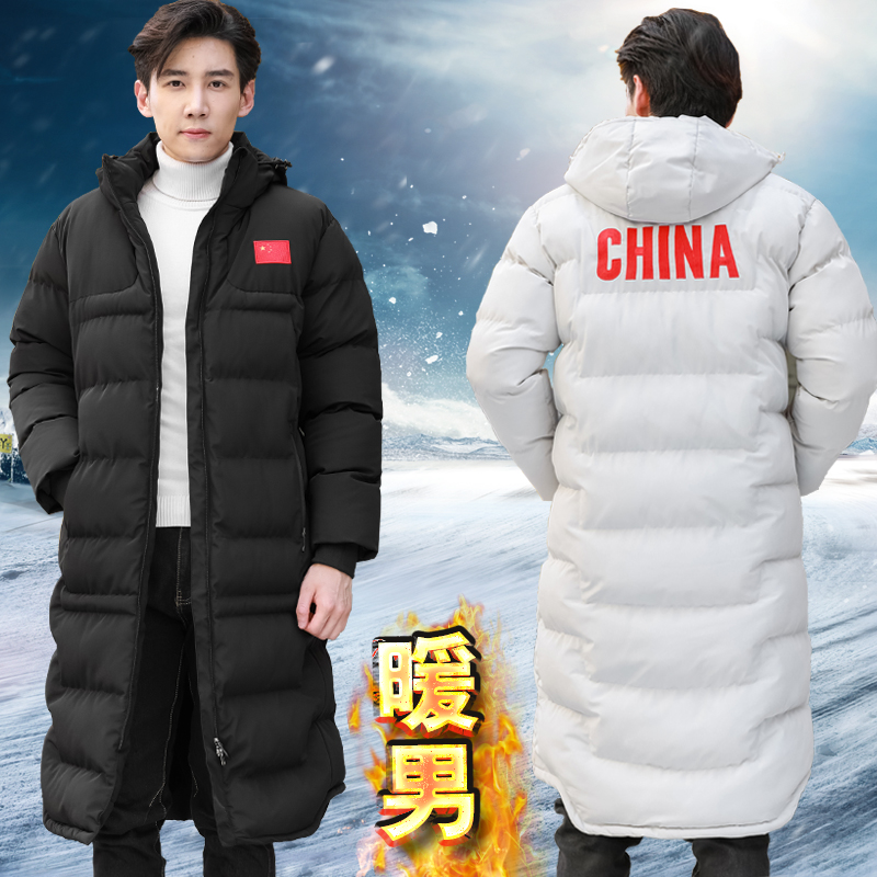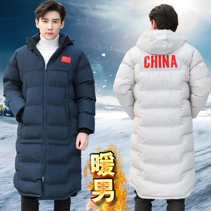 National team athletes winter training coat men's and women's long down cotton-padded over-the-knee sports cotton-padded winter training coat