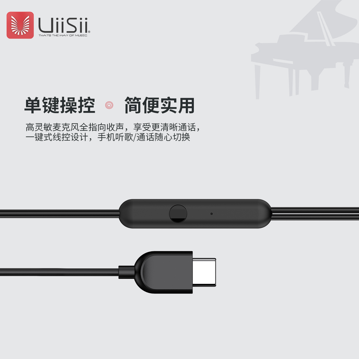 UiiSii Yunsee U7C Stereo Lower Heavy Bass Type-C Flat Wire Wire Control Straight In-ear Headphones