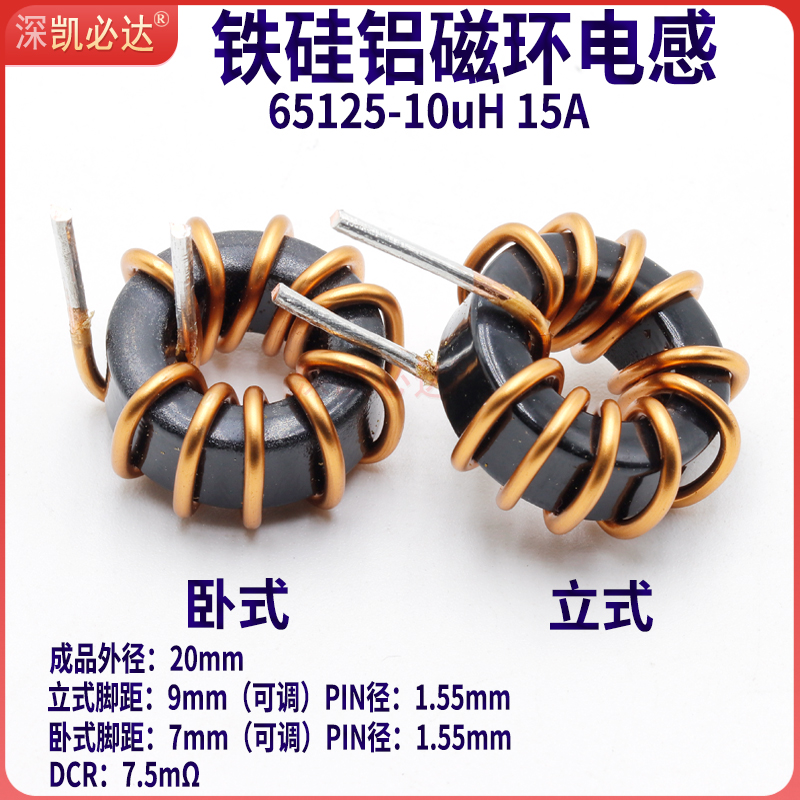 Iron silicon aluminum magnetic ring inductance 10UH 15A 65125 energy storage inductance choke coil plug-in ring inductance coil