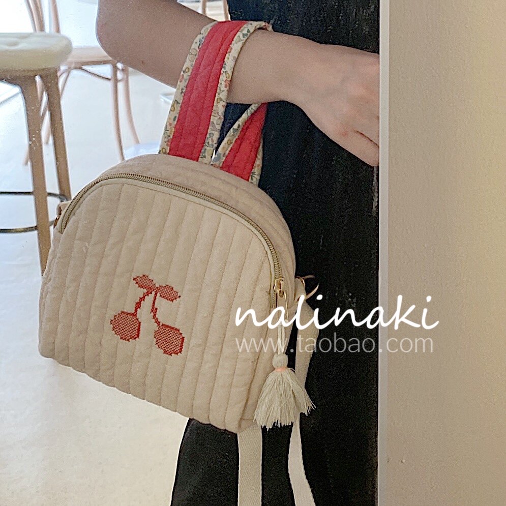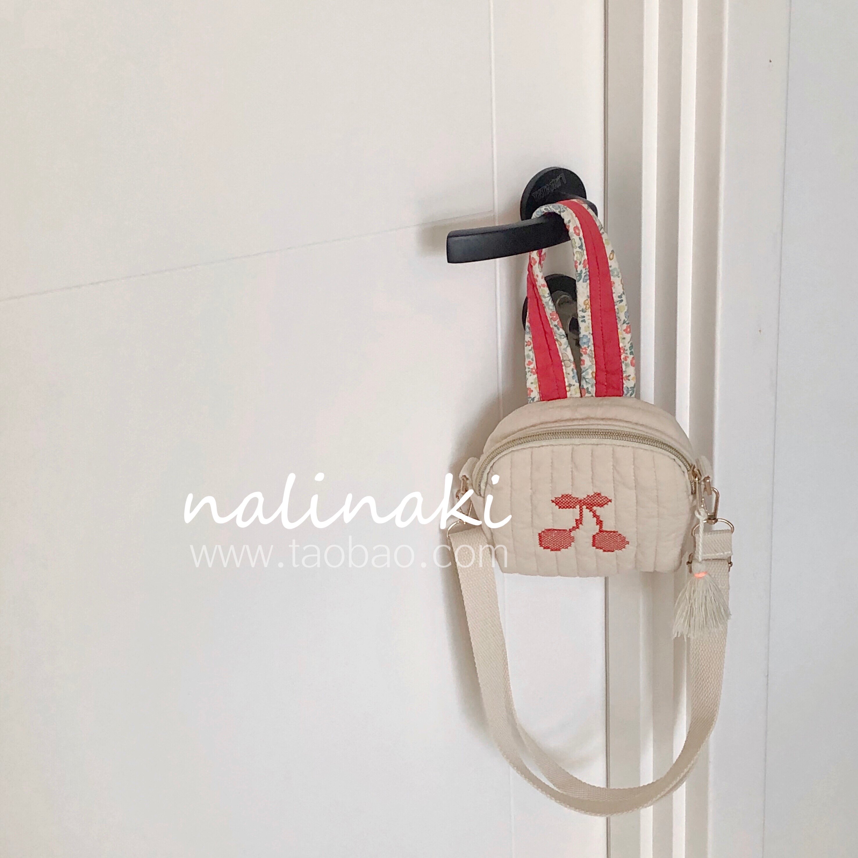 nalinaki parent-child Korean cherry embroidery round hand single shoulder diagonal satchel with wind retro bracelet casual