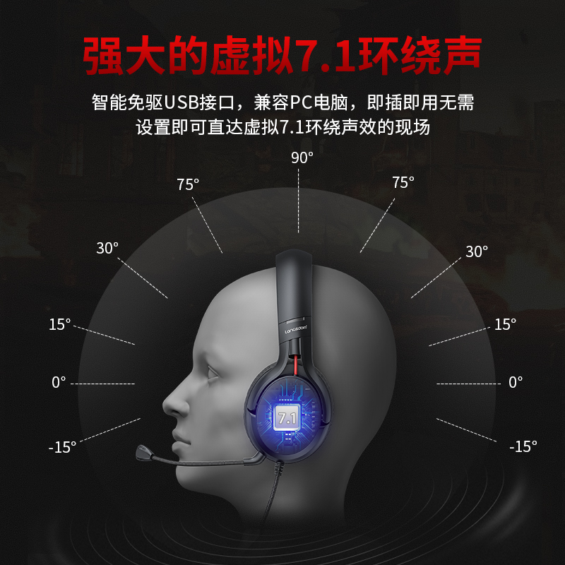 Langston G4 computer headset head-mounted desktop notebook eating chicken wired listening sound discrimination electric competition Jedi survival game csgo special with wheat noise reduction microphone microphone USB7 1 channel