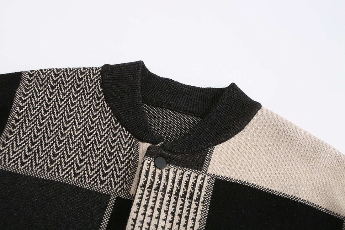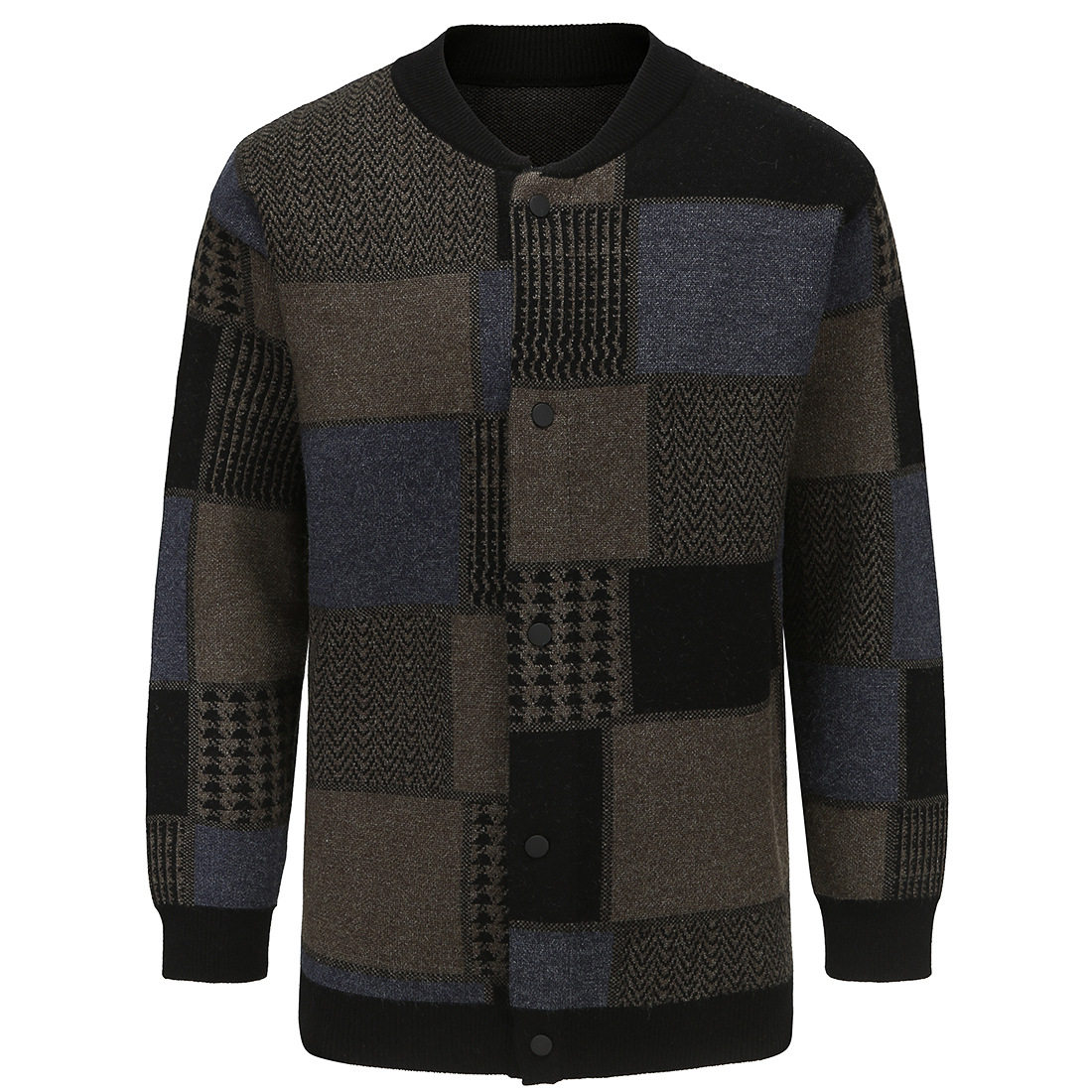 Spring Autumn Collision Color Thickening Upright Collar Mid-Length Prints Cardio-weaters Personality Fashion Cardiovert Sweater External Hitch Hooded Men's Jacket