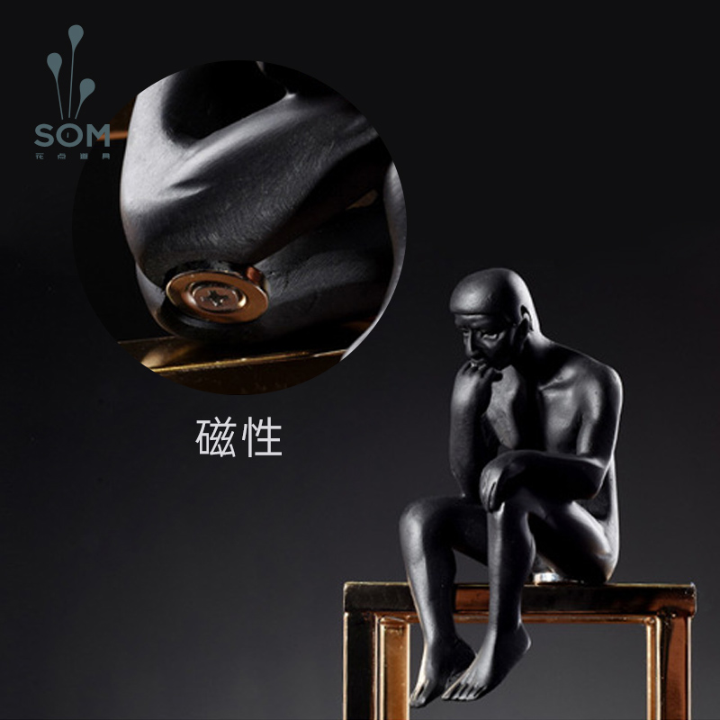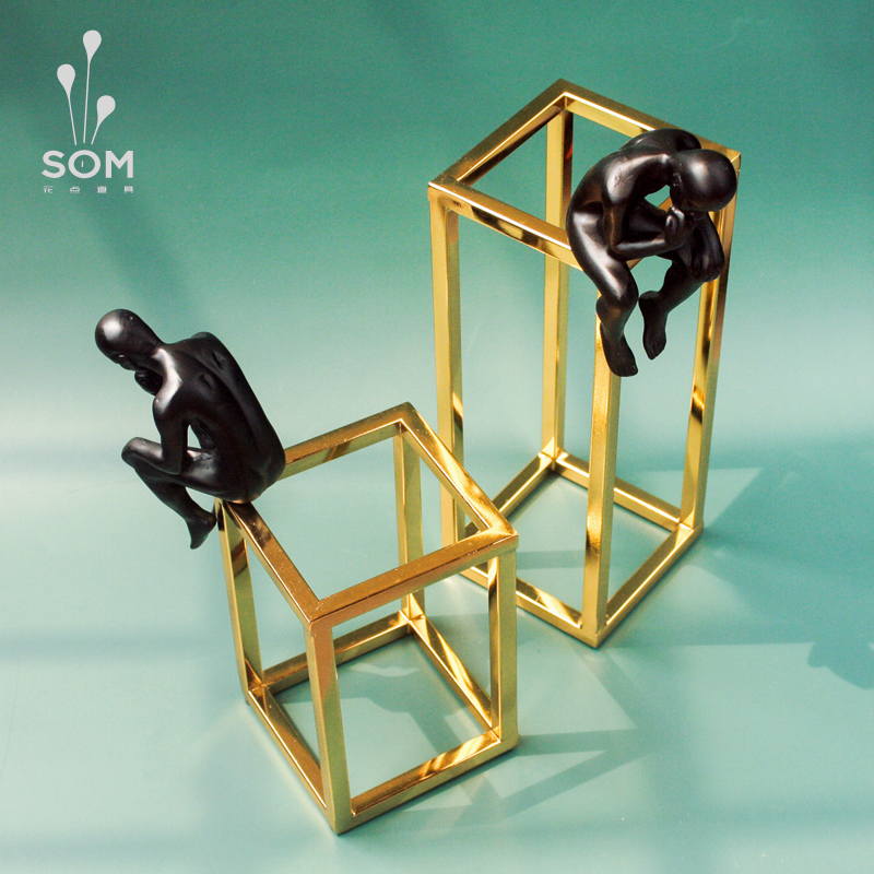 Creative ornaments golden rectangular frame ornaments alloy small black decoration props with thinker man model