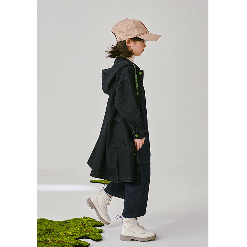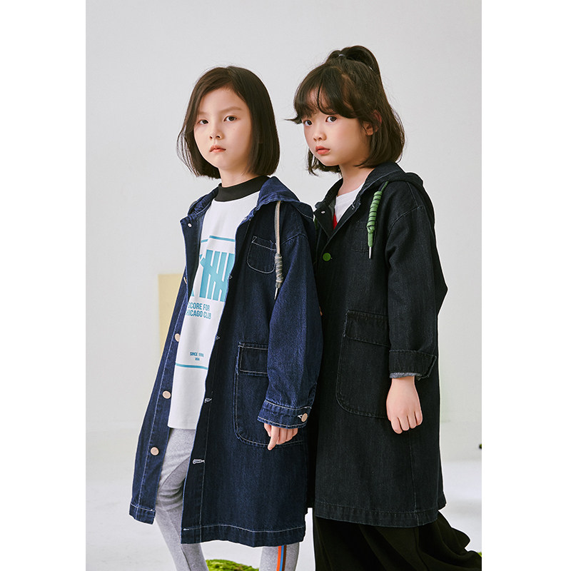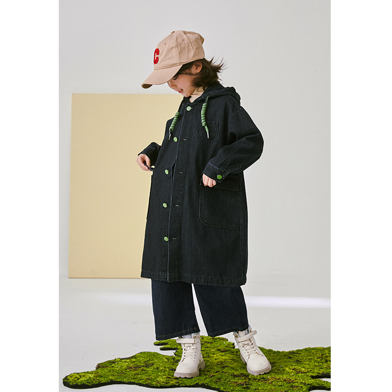 Li Xiaoxian children's 2022 autumn new jacket boys and girls Korean style neutral style fashion mid-length denim trench coat