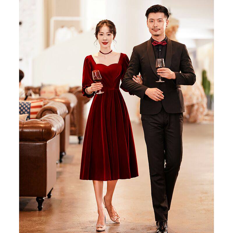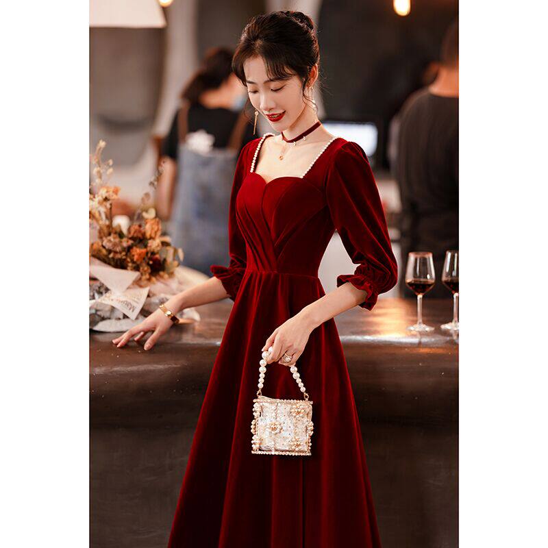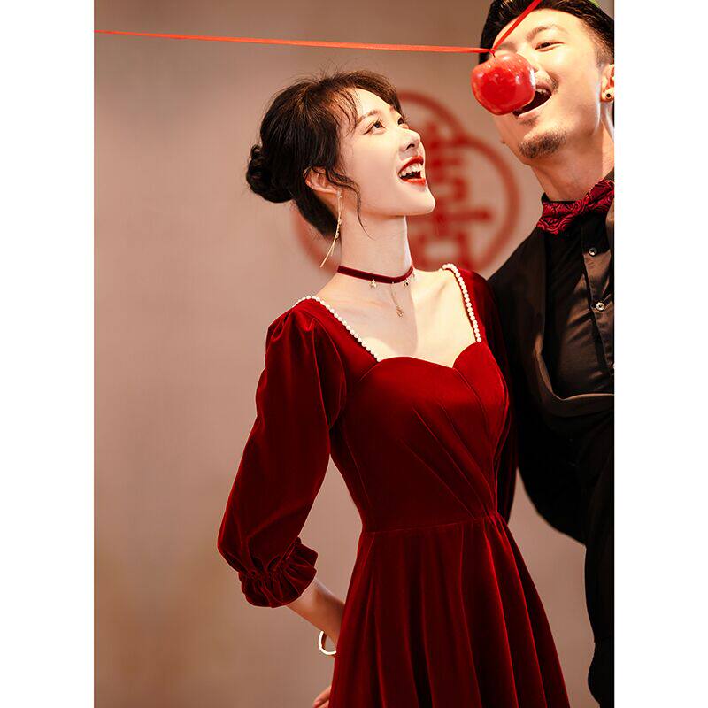 Velvet toasting clothes large size fat mm fleeing princess bride 2022 new wine red home clothes dress to cover the arms