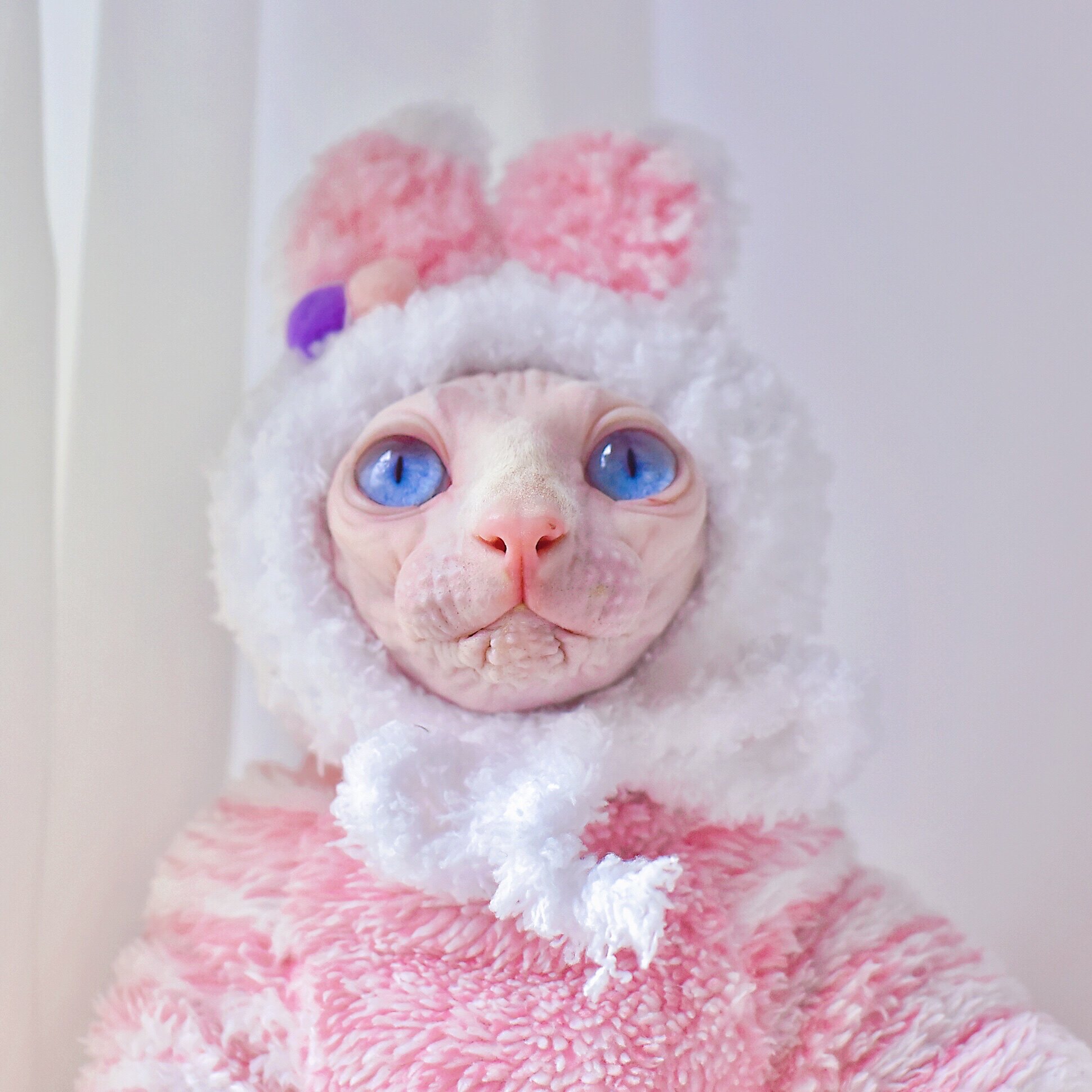 YH new cute shape hand-woven cotton warm hat Sphinx hairless cat clothes accessories German