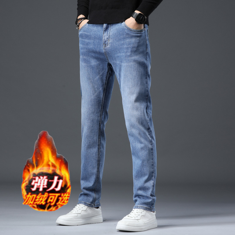 Hong Kong Boomer High-end Denim Jeans Man 2021 New Winter Plus Suede Thickened Straight Barrel Men Casual Long Pants