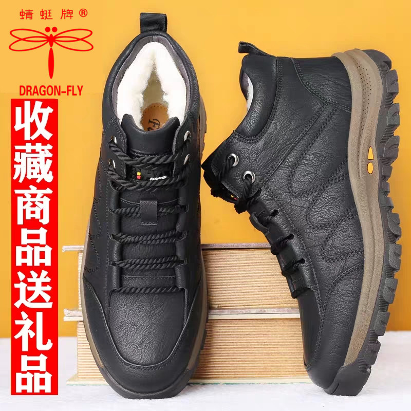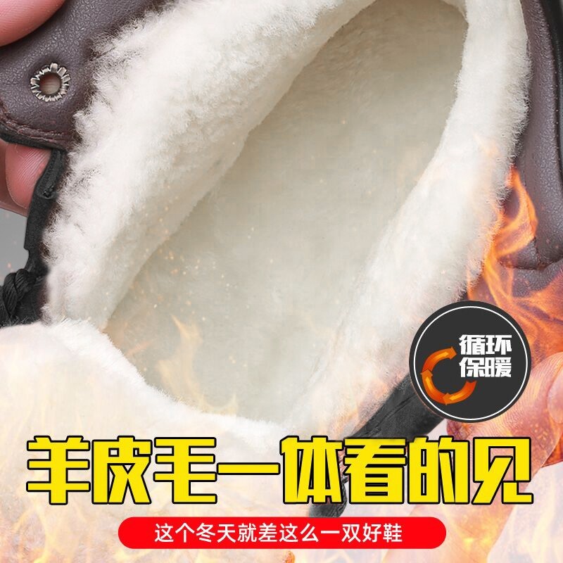 Leather men's cotton shoes in winter heating and thickening large number of high-gang leather shoes men and wool fur one snowboots