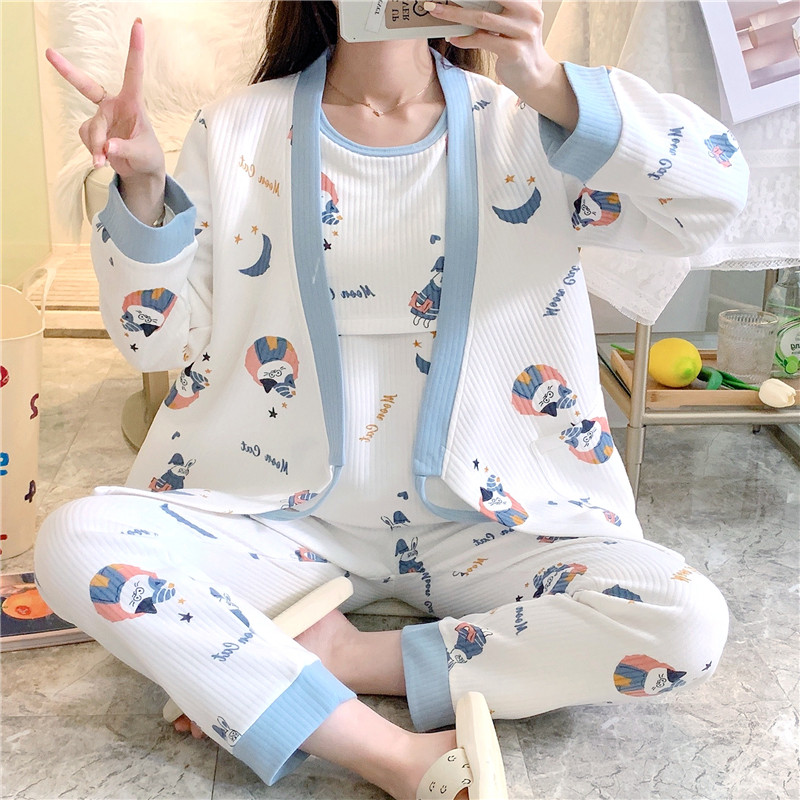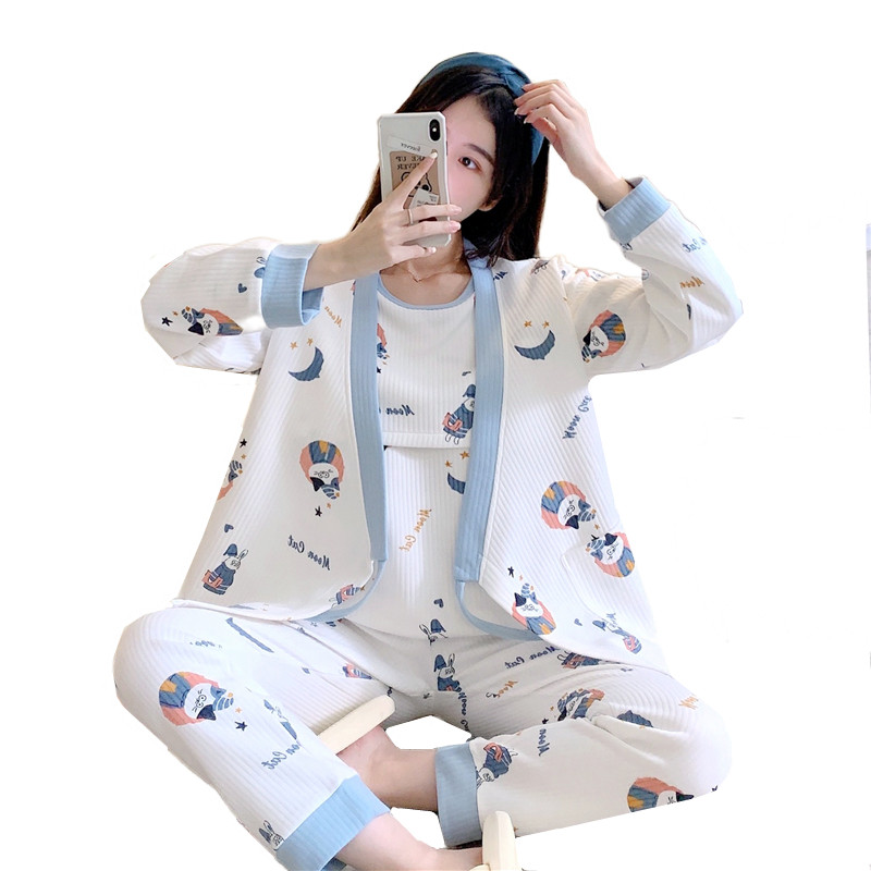 Air cotton confinement clothing winter postpartum cotton nursing pregnant women pajamas women's spring and autumn home clothes autumn and winter three-piece suit