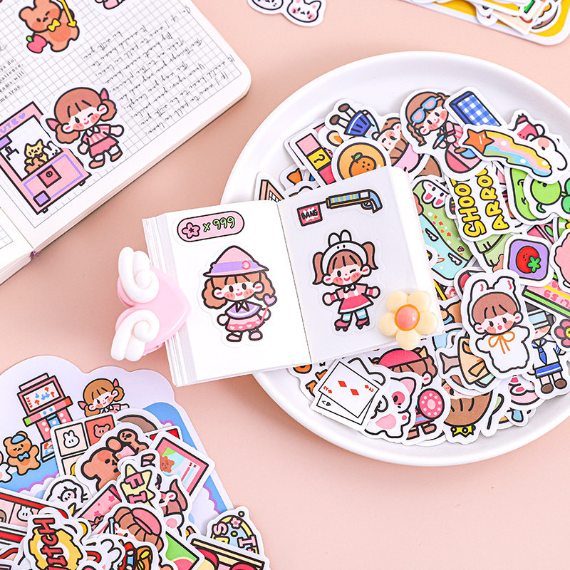 100 handbooks stickers Soft and soft trampoline Dining Game Consoles Salt-style Teenage Hearts Cartoon Children Cute Girls Handbooks Ben Material Mobile Phone Water Glass Diy Decoration Small Pattern Appliquise
