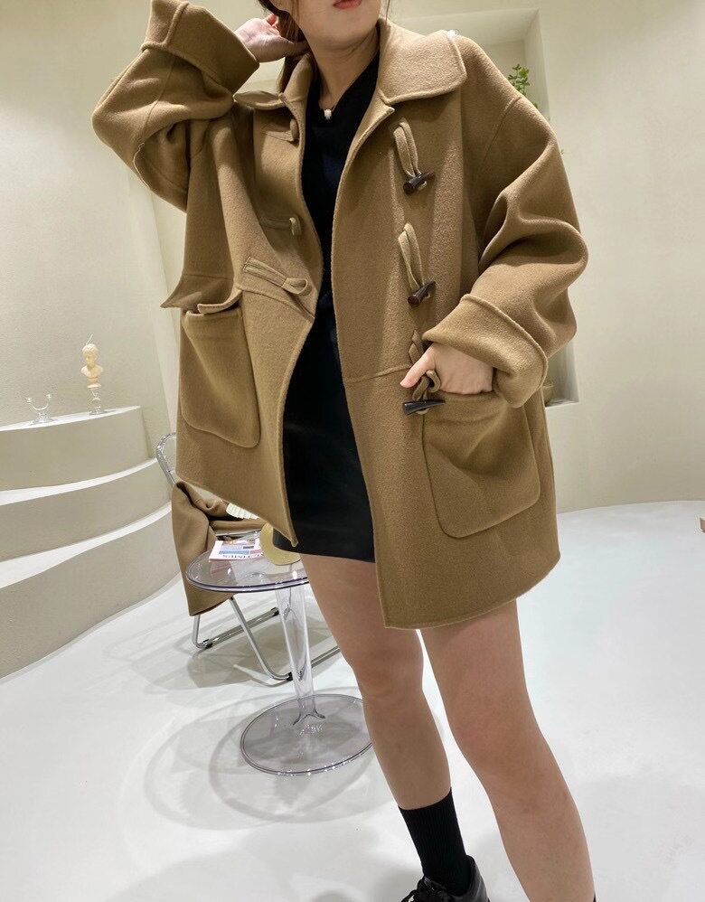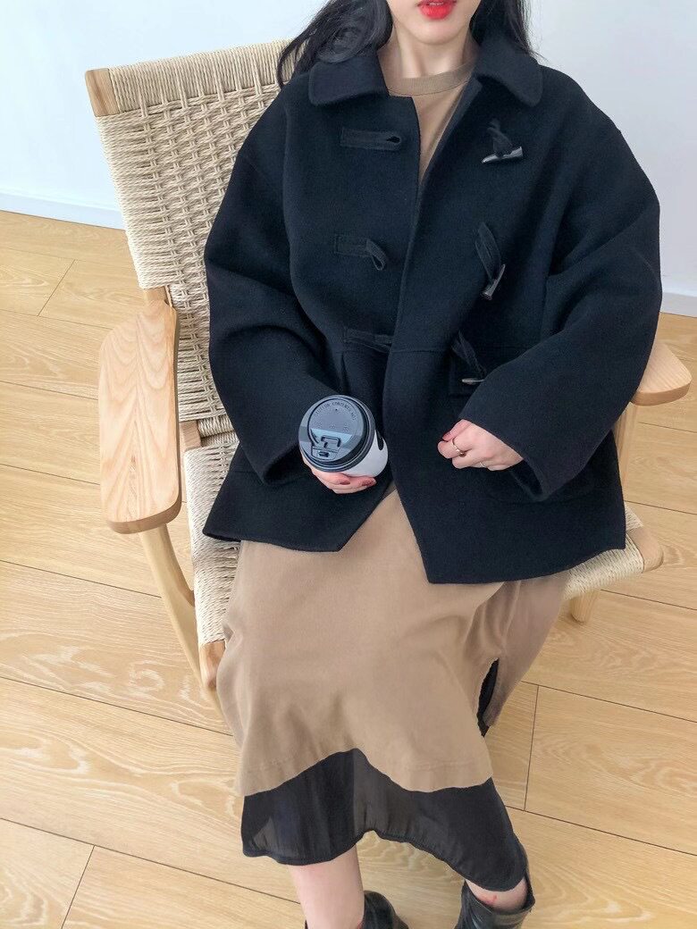 Horn buckle Double face cashmere big coat Girl short 2021 New Korean version Loose Reduction School Wind Fur Coats