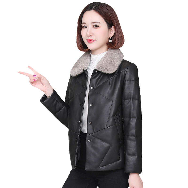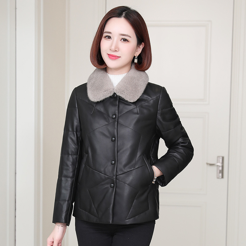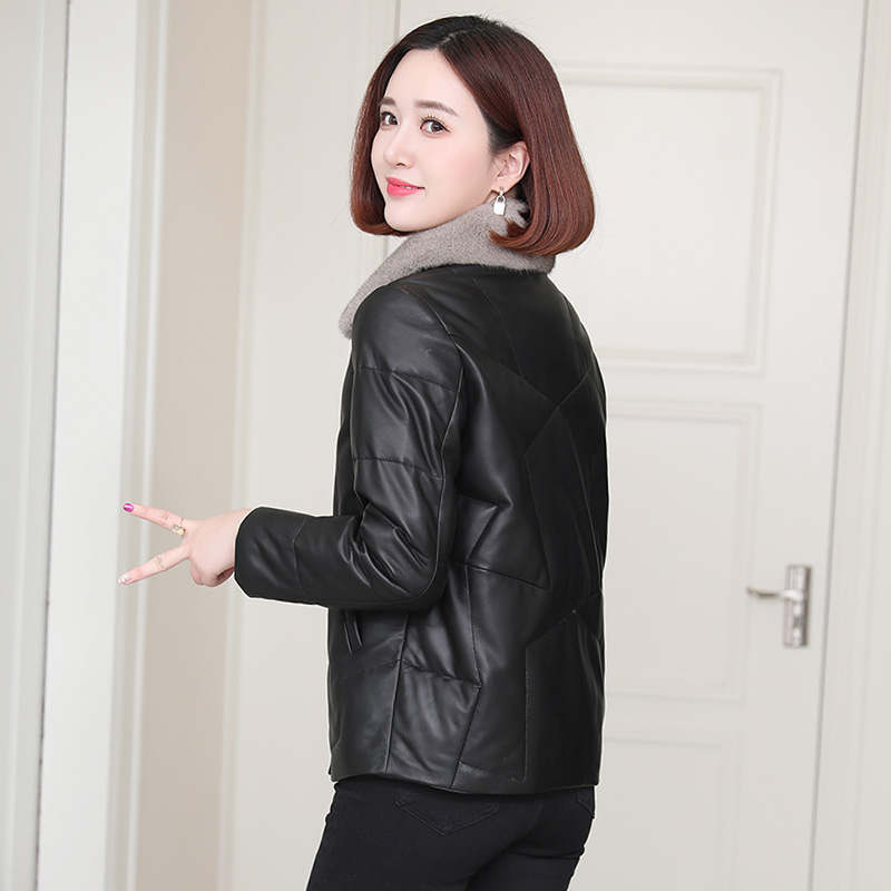 Genuine leather down jacket women's short winter small jacket mink fur collar large size sheepskin jacket leather fur