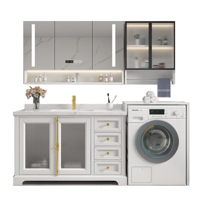 American Washing Machine Integrated Cabinet Balcony Handwashing Pool Washbasin Cabinet Combined Makeup Room Wash Terrace Rock Board Bath Cabinet