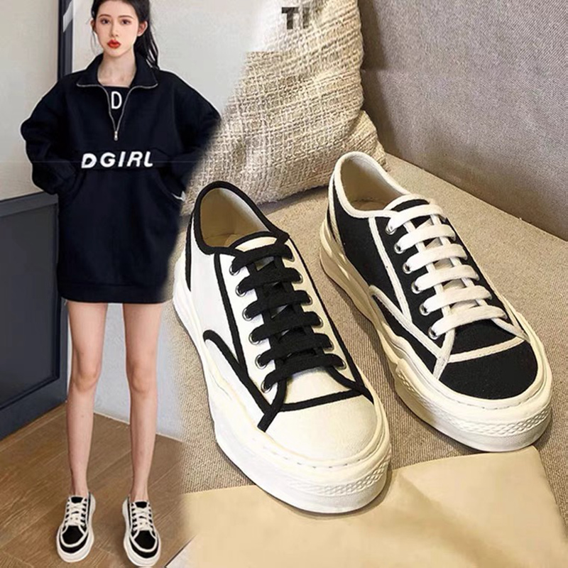 Super Fire 20224143 Canvas Shoes Women's Small Fragrance Dissolving Board Shoes High Quality Black and White Original Design Sense Large Size