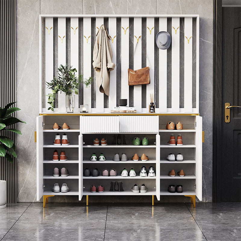 New light luxury shoe cabinet with hanging clothes integrated home door coat rack entrance living room compartment cabinet simple storage cabinet