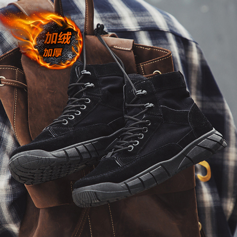 Martin Boots Male wave Inlenty wind high cylinder tooling combat men's shoes midcylinder retro winter gush cotton shoes snowy boots