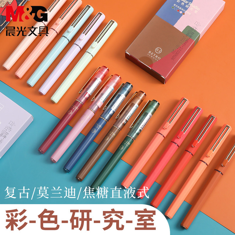 Morandi color series direct liquid water ball pen neutral black student 0 5 full needle tube pen carbon signature exam special speed dry direct liquid pen replace core high color set