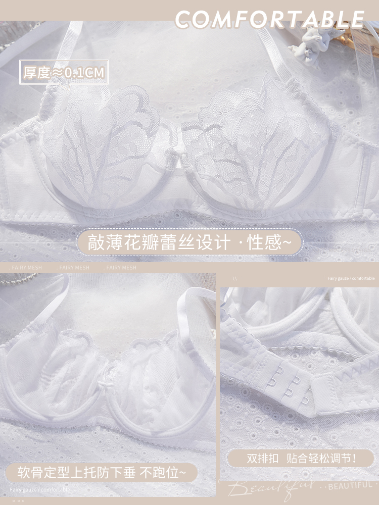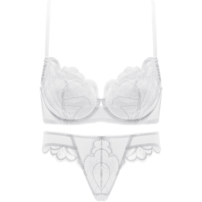 White lingerie female slim large breasted with small closeted breast upper-proof saggy-style sexy poly-woo bra hood suit