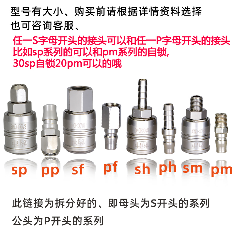 Small and medium pneumatic wrench quick joint tracheopneumatic woodworking blow dust gun male head self-lock quick-insert quick fitting