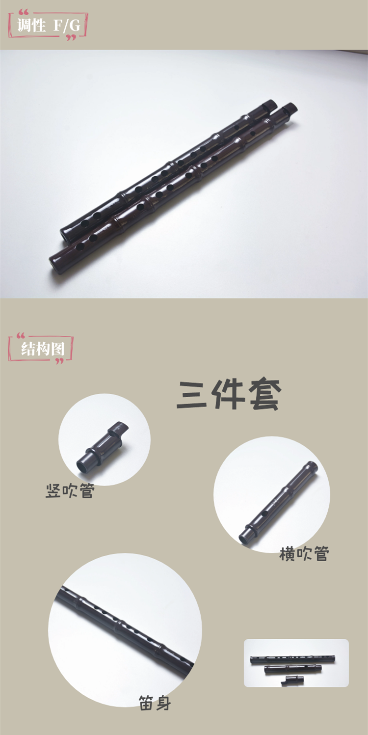 Nie Yi Lin Yi heart horizontal and vertical flute dual-use resin straight children's white and black six-hole new Chinese-style straight flute and flute campus