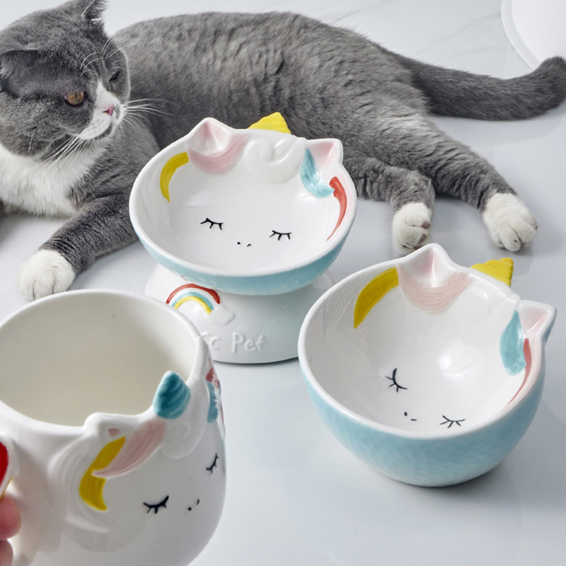 Unicorn ceramic high foot bowl slope cat meal pad protects cervical spine elevated pot pink eating and drinking bowl