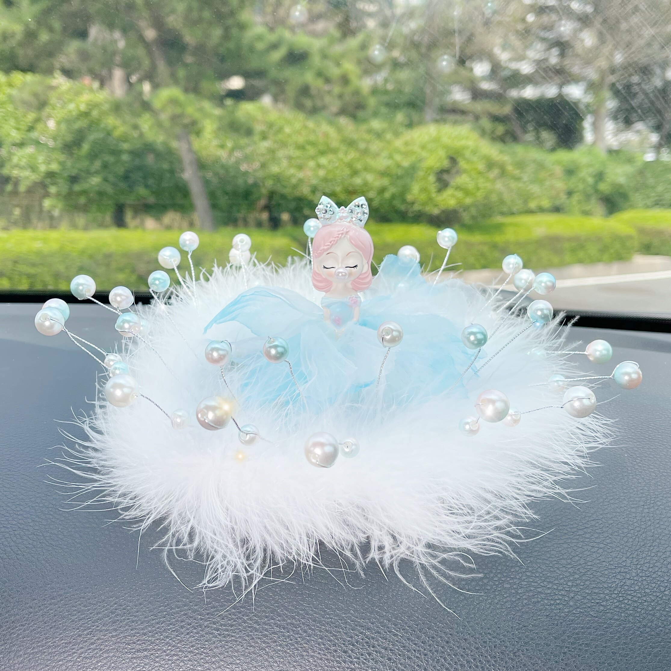 Car Pendulum decoration Trolley Decoration Goddess Creative Cute Pearl Feather Non-slip Cushion Bubble Girl