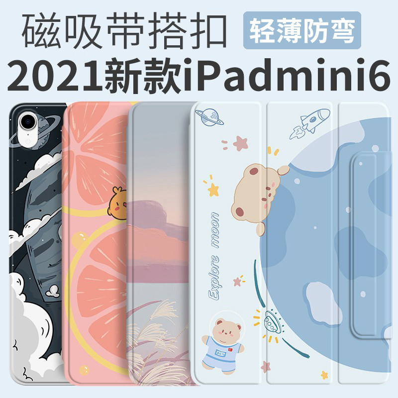 Applicable iPadmini6 protection shell 2021 new mini 6 protective sleeves 8 3-inch magnetic suction shell trifold anti-bend belt pen slot intelligent double-sided clamp ultra-thin protective shell jacket Apple flat 6 cartoons