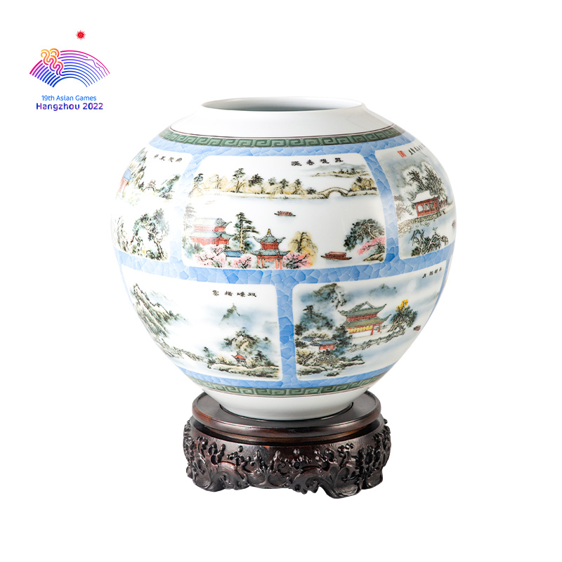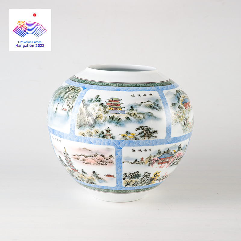 (Limited 19) Hangzhou Asian Yang Taiyu White Jade West Lake ten View Collection Vase from Chinese ceramic master