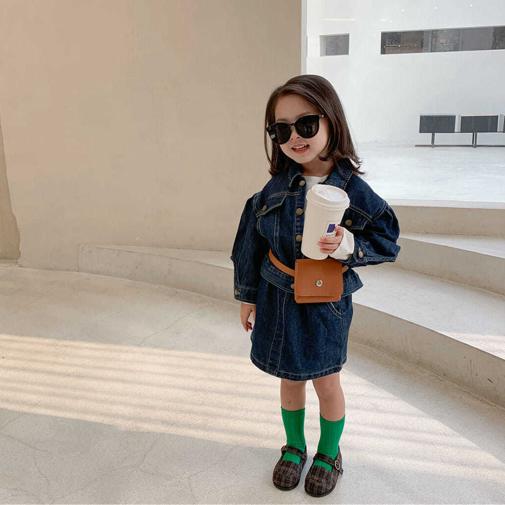 blue denim skirt suit