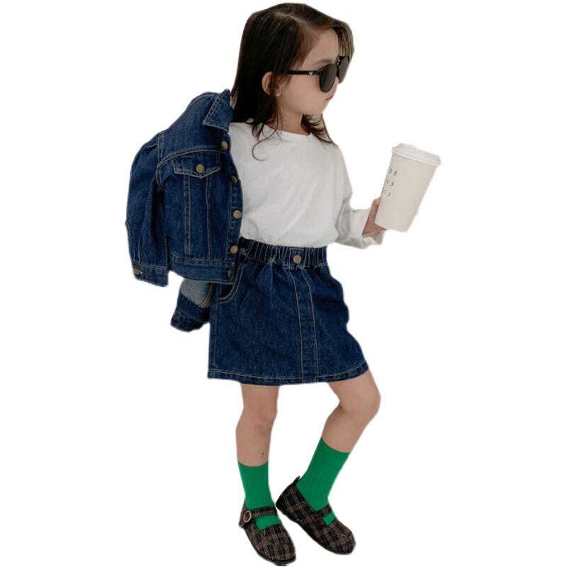 Girls Net Red Suit Spring 2022 New Western Style Fashionable Girls Denim Jacket Skirt Children's Two-piece Set