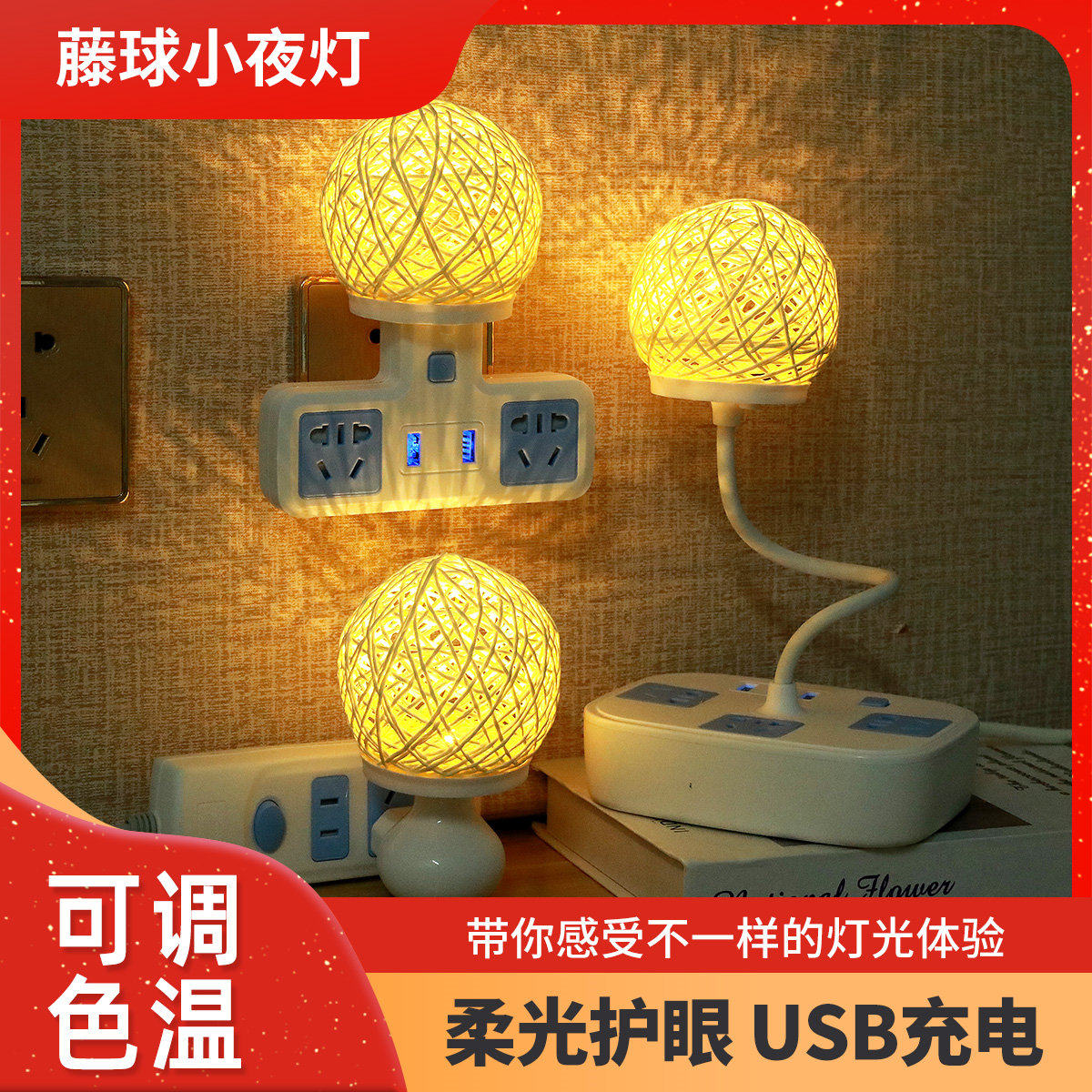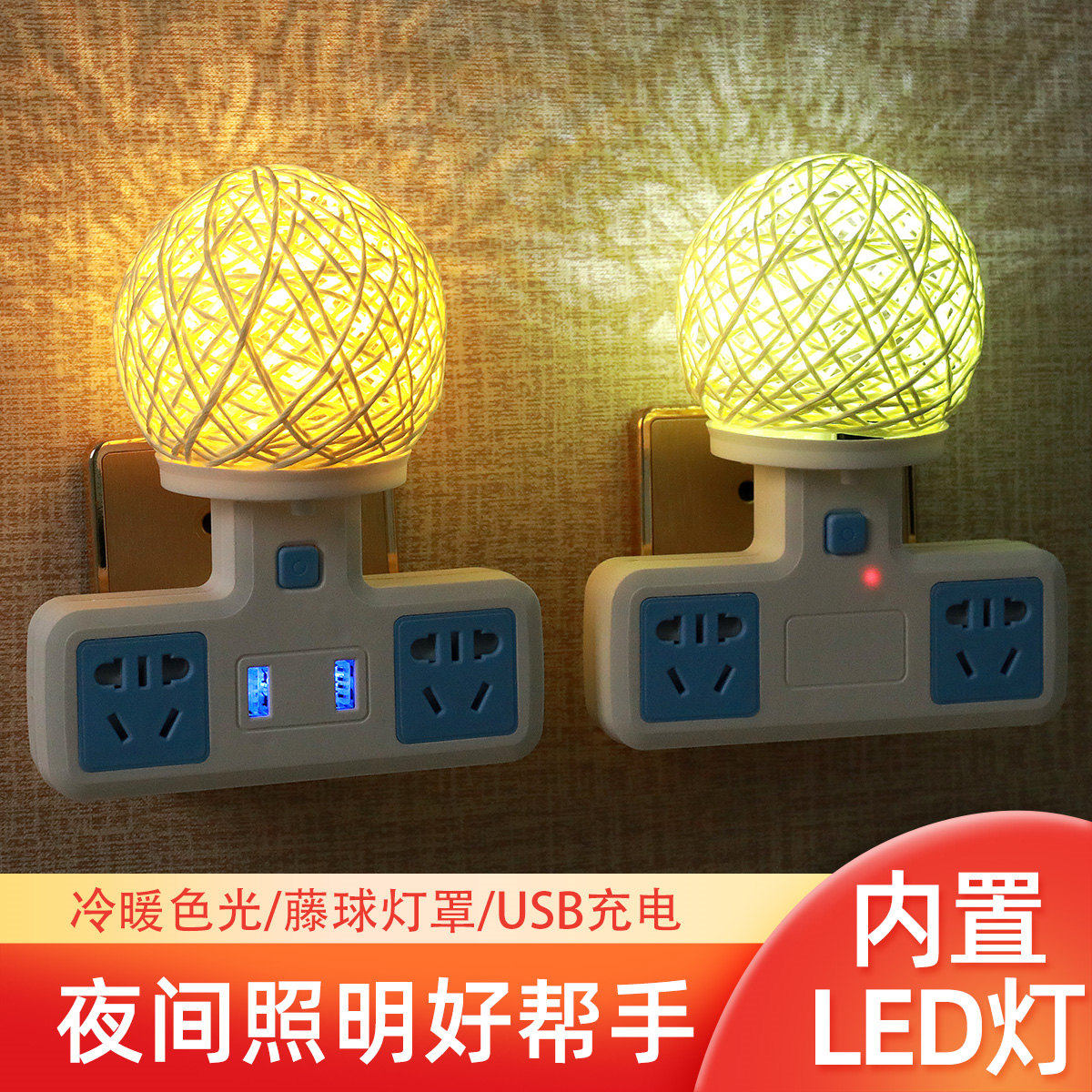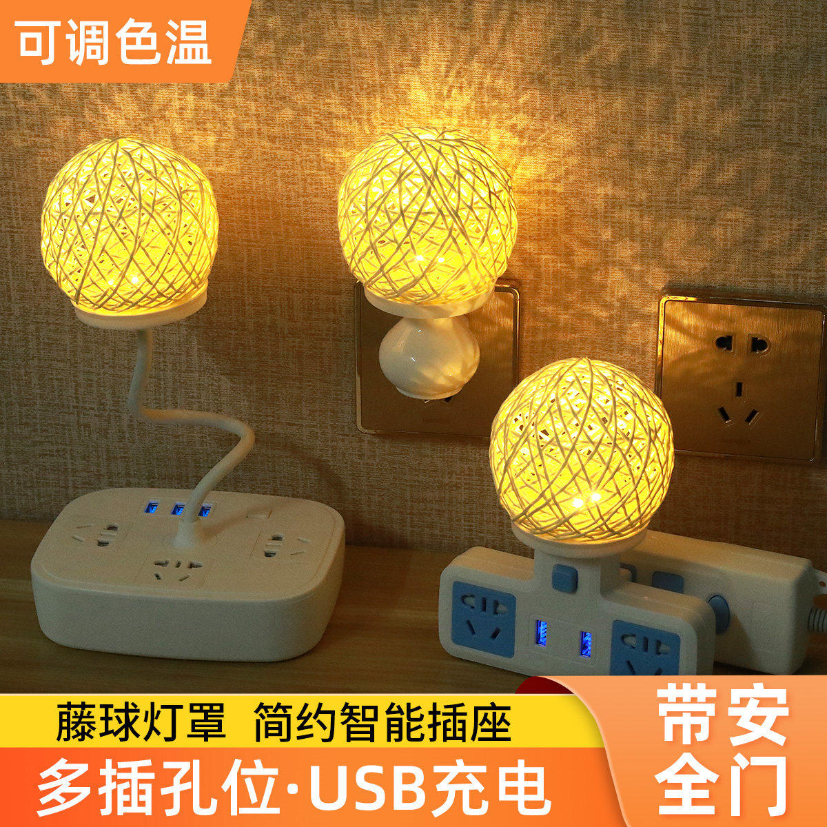 Plug-in row creative cute girl heart student dormitory home desktop socket with USB smart small table lamp extension cord