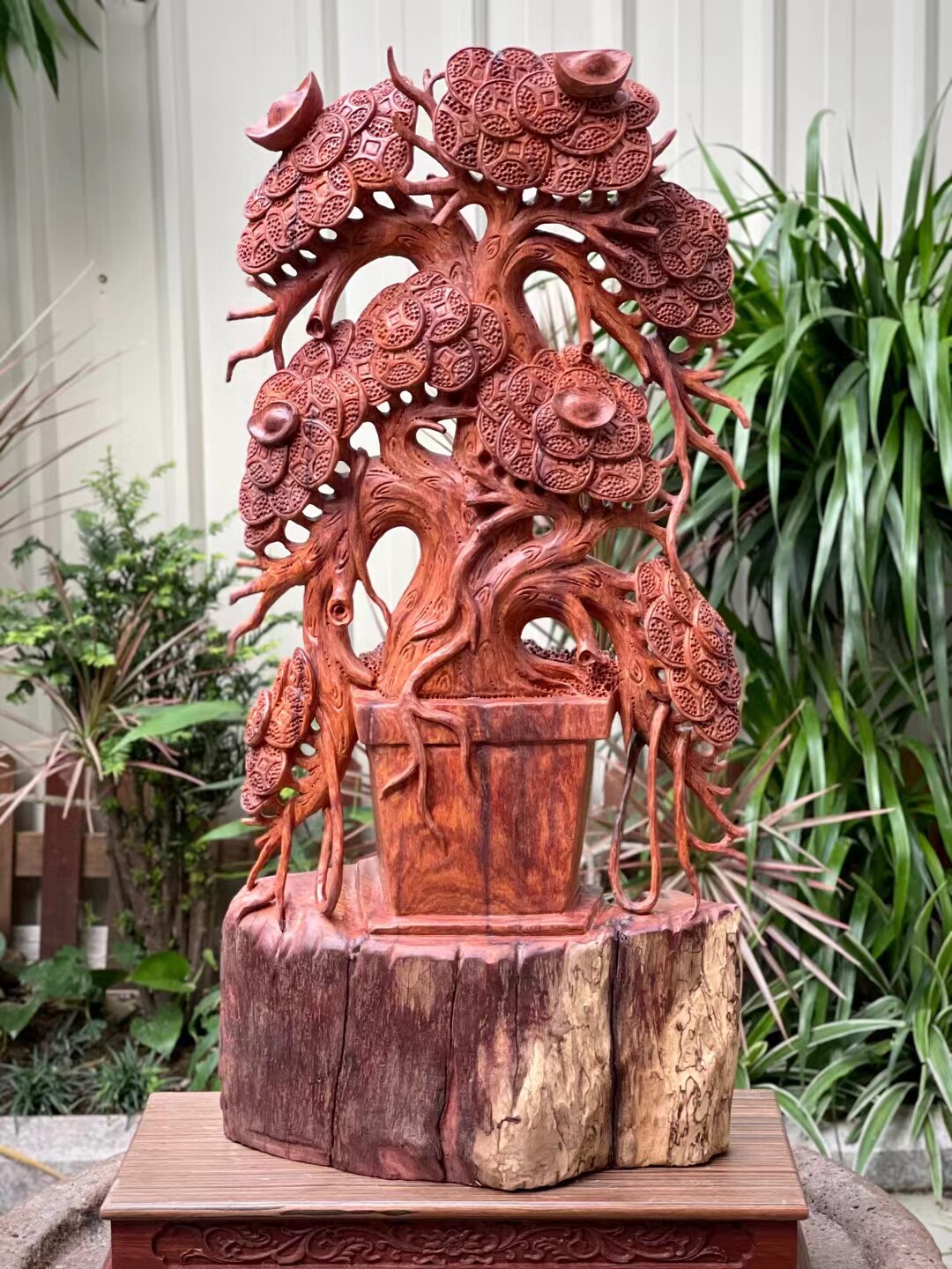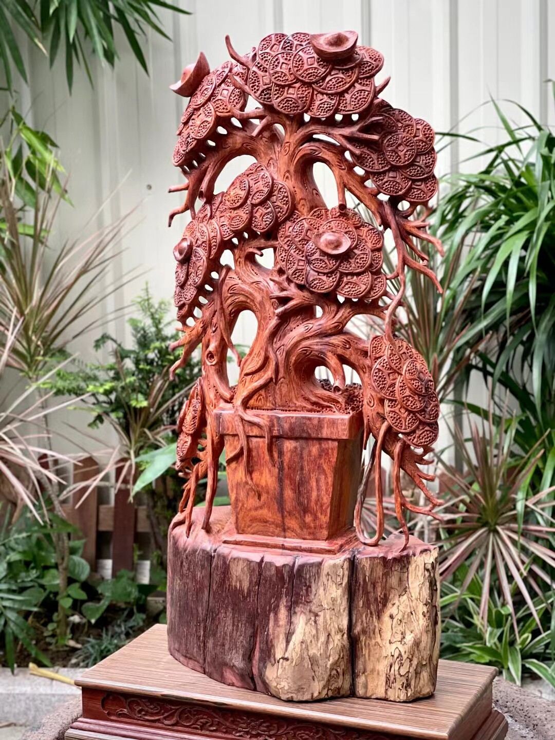 Burmese rosewood root carving ornaments money tree no paint and no wax hand-carved craft gifts ornaments wood carving potted plants as a whole