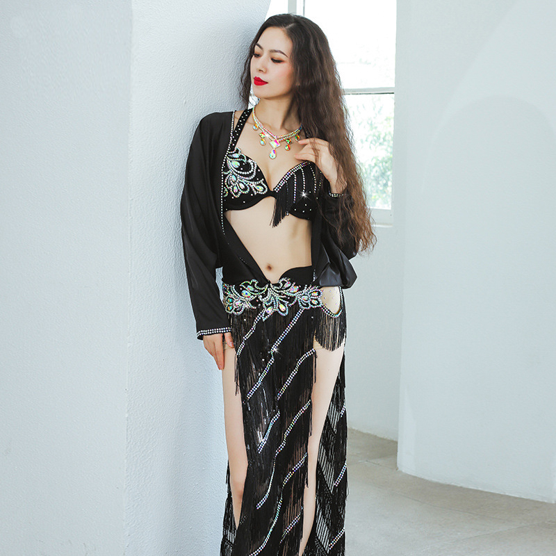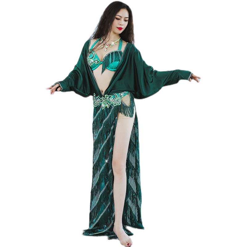 2022 new oriental belly leather dance performance Out of service Stage Show Double high open fork Sexy long dress Stream Subright sheet embroidery