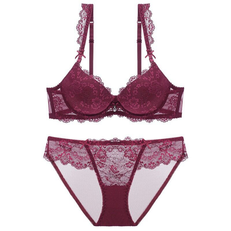 European and American red lingerie female sensational bra small breasts gathered in large and medium shape thick French lingerie suit