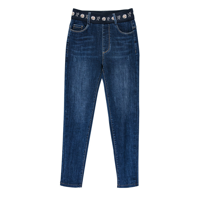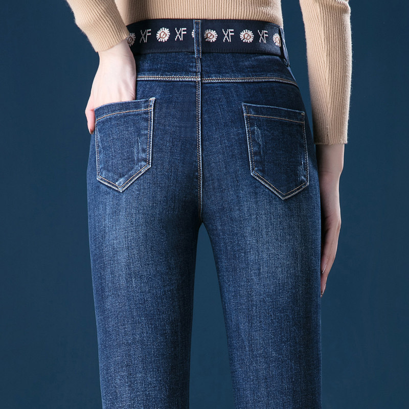 High waist plus velvet thick jeans women's 2021 winter new large size women's trousers are thin elastic waist cigarette pipe pants winter