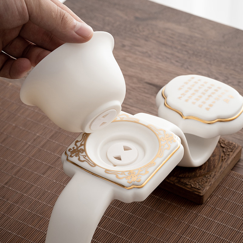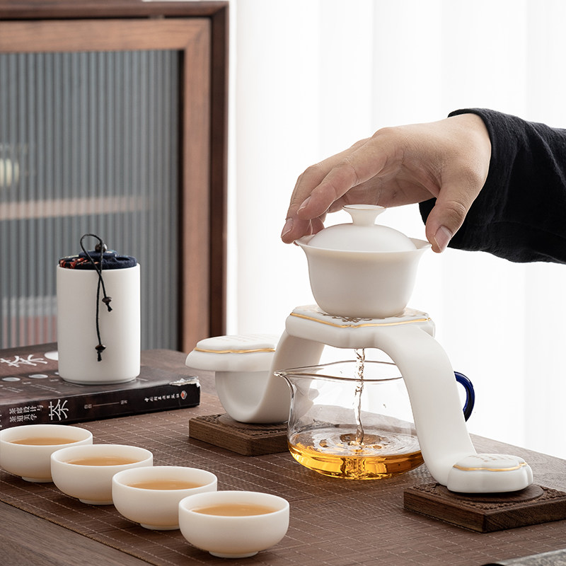 Lazy tea set for household lazy tea set for high-end kung fu tea set for white ceramic semi-automatic tea