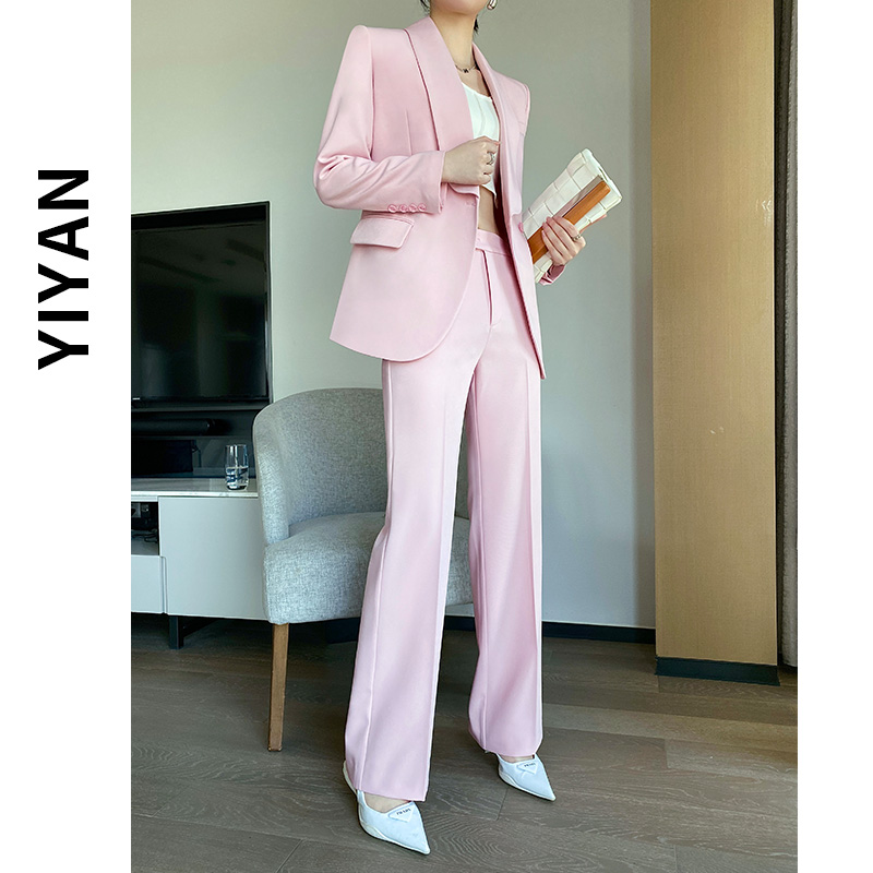 Pink suit female spring autumn 2023 fashion high - end professional English wind microhorn pants casual suit tide